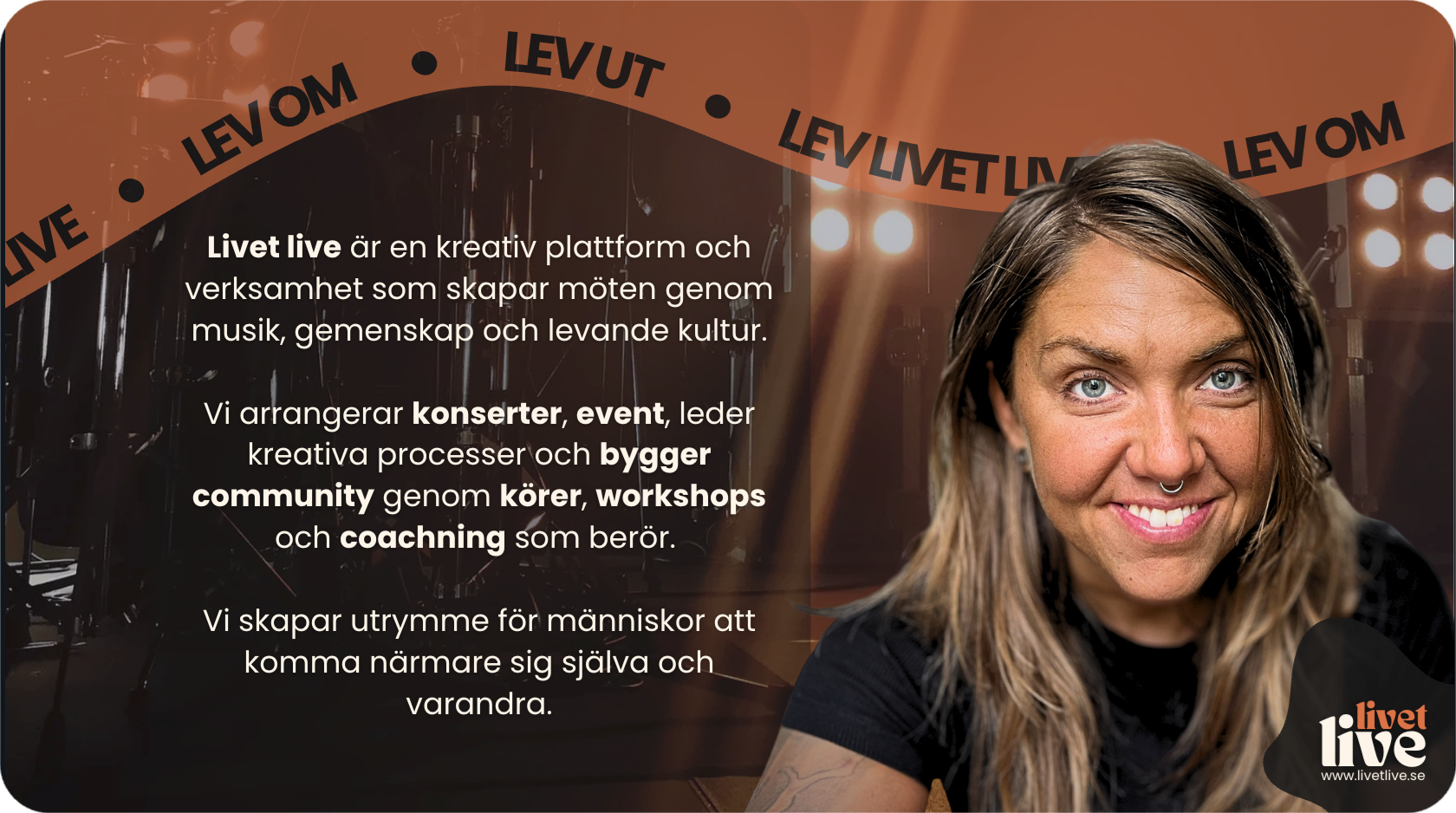 Min förhoppning är att Livet Live ska kunna bli ett stöd, en inspirationskälla och en musikalisk mötesplats – där människor får komma närmare varandra och sig själva genom sången.